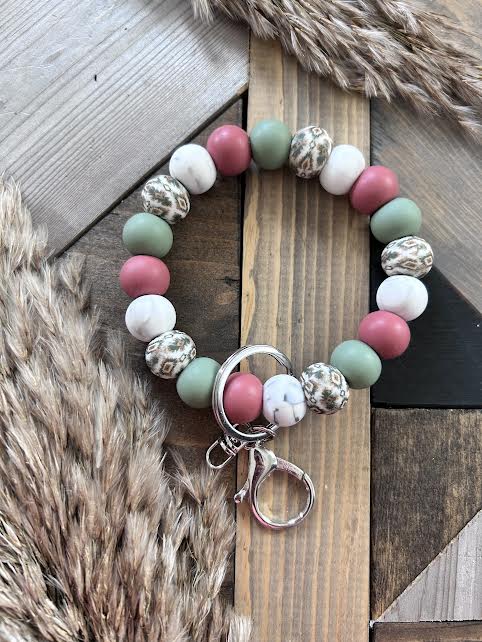 Never lose your keys again with our stylish beaded wristlets! Our wristlets are made with a non-elastic cord but big enough to slide on your wrist. Leave a comment when checking out if you would like a few more beads added to make into a larger size.