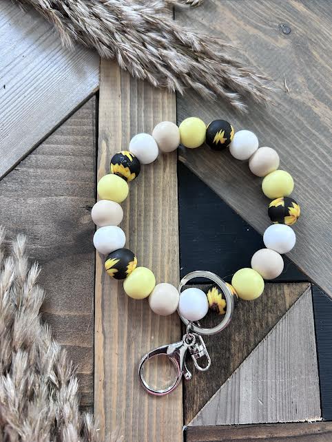 Never lose your keys again with our stylish beaded wristlets! Our wristlets are made with a non-elastic cord but big enough to slide on your wrist. Leave a comment when checking out if you would like a few more beads added to make into a larger size.